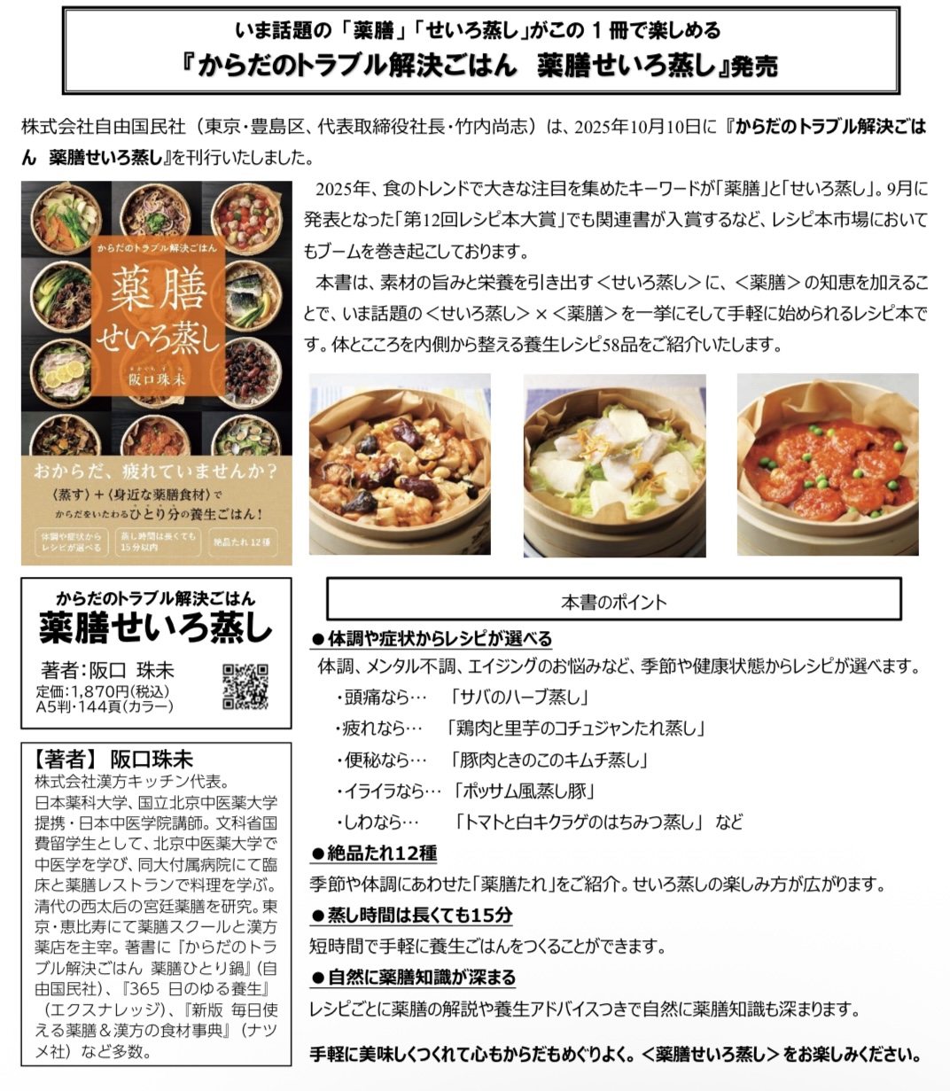 新著「薬膳せいろ蒸し」が本日10日に発売になりました。