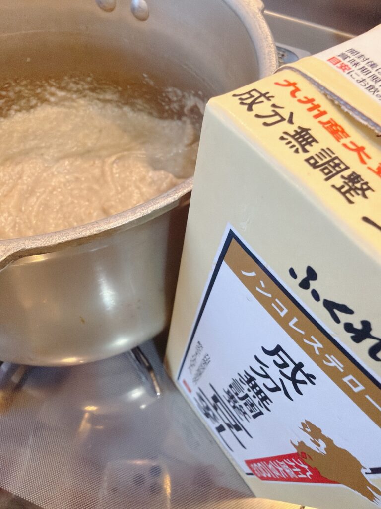 5️⃣加熱しながら豆乳を少しずつ混ぜながら加える