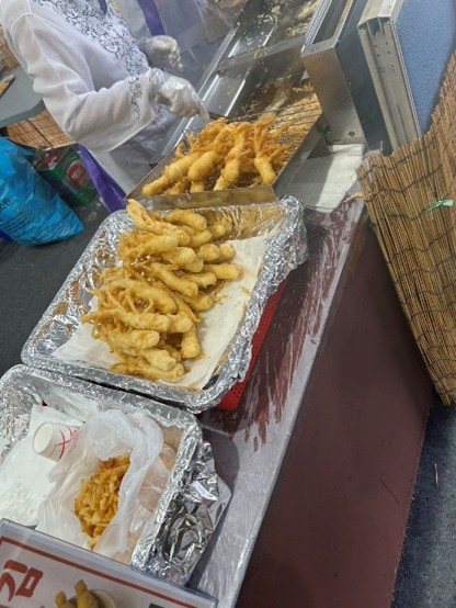 ④ 油を160度に熱し、③にくぐらせた朝鮮人参を入れて、中に火が通るまでゆっくりと3分くらい揚げる