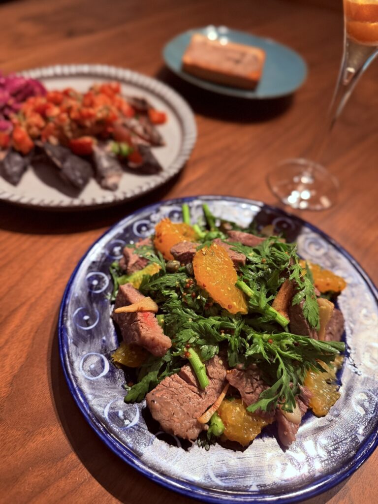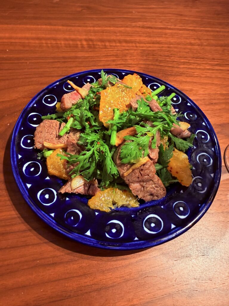 【牛ヒレ肉と春菊と柑橘のリフレッシュサラダ】